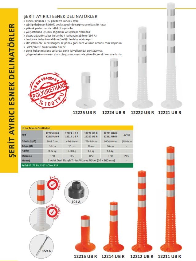 Trafik ve iş güvenliğini sağlayan bir trafik malzemesidir. Delinatörler genellikle otoyol, otopark, inşaat sahası, cadde ve sokak başında araçları yönlendirmek için kullanılmaktadır. Delinatörler sağlam yapısı sayesinde darbelere ve hava koşullarına karşı dayanıklıdır. Gece görüşünü arttırmak için delinatörler, reflektif malzeme ile kaplıdır. İstenildiğinde vida ile yere veya asfalta sabitlenebilir.