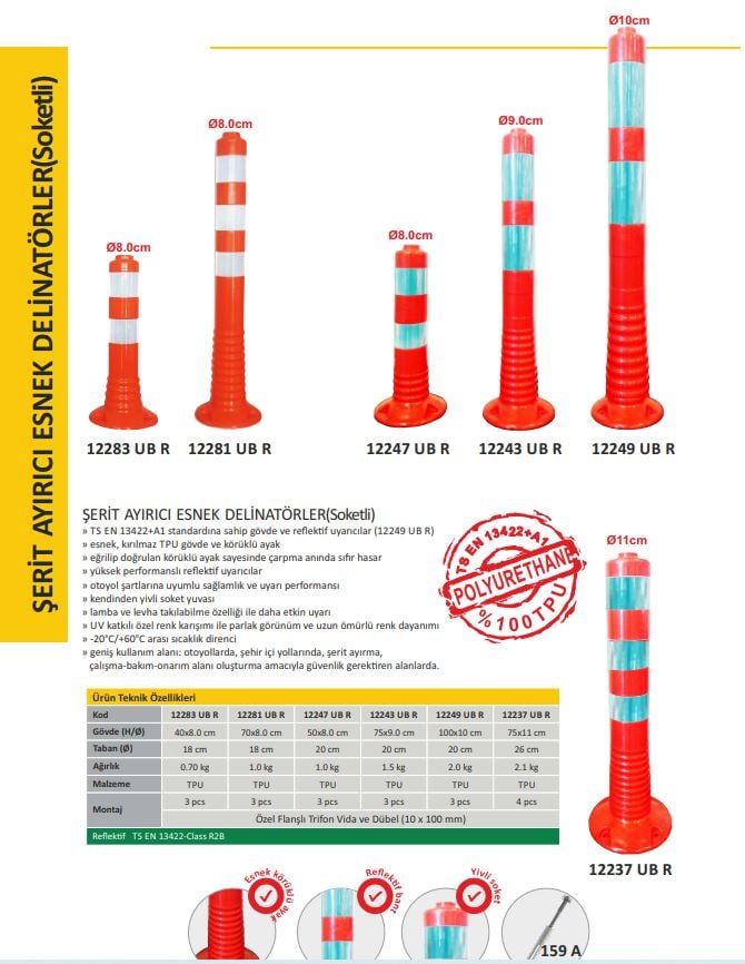 Delinatör: trafik ve iş güvenliğini sağlayan bir trafik malzemesidir. Delinatörler genellikle otoyol, otopark, inşaat sahası, cadde ve sokak başında araçları yönlendirmek için kullanılmaktadır. Delinatörler sağlam yapısı sayesinde darbelere ve hava koşullarına karşı dayanıklıdır. Gece görüşünü arttırmak için delinatörler, reflektif malzeme ile kaplıdır. İstenildiğinde vida ile yere veya asfalta sabitlenebilir.
