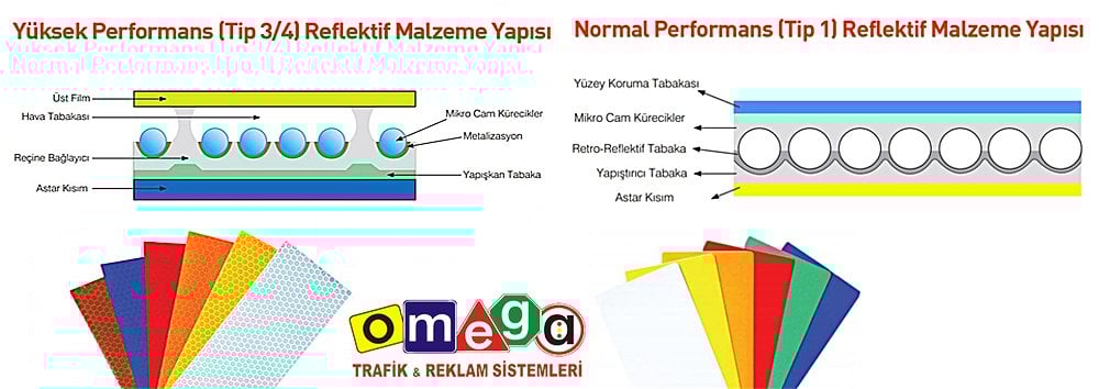 Lpg'li araçlar giremez levhası işareti : "Normal performans reflektif ve Yüksek performans reflektif " malzeme ile üretilmiştir. Reflektif değerleri, yansıma oranlarını göstermektedir. Normal performans reflektif'te (Tip-1) kullanılmaktadır. Yüksek performans reflektif'te ise (Tip-4) malzeme kullanılmaktadır.