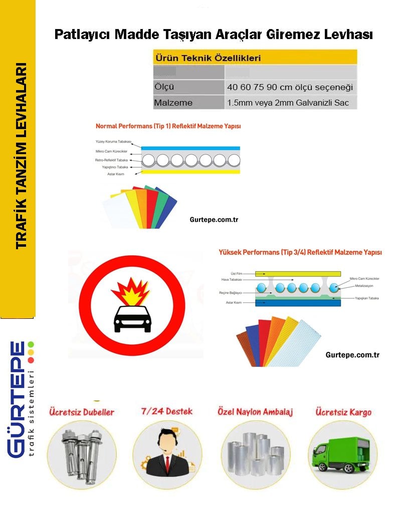 Patlayıcı Madde Taşıyan Araçlar Giremez İşareti - Trafik Tabelası ( 40 cm / 75 cm / 60 cm / 90 cm )