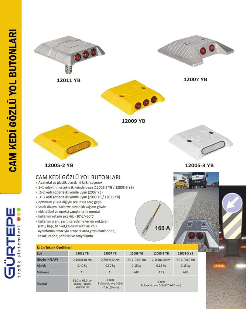Yüksek tonaja dayanıklı olarak üretilmiştir. Ağır vasıta trafiğine dayanıklıdır. Yüksek parlaklıkta reflektör ile, maksimum gece görüşüne sahiptir. Asfalt veya beton zemine burgulu çivi ile monte edilir.