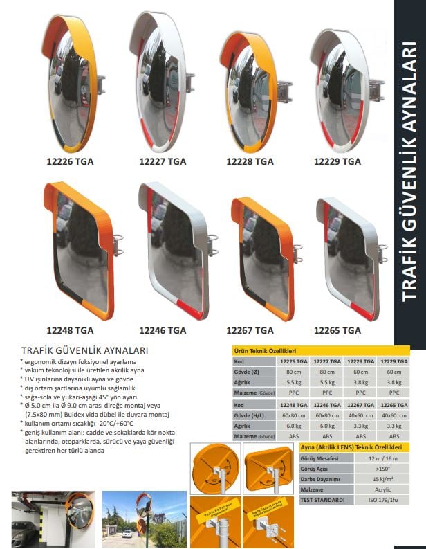 Görüş mesafesinin dar olduğu sokak, cadde, şantiye, otopark vb. yerlerde giriş ve çıkışlarda kullanılır akrilik olduğu için paslanma yapmaz deforme olmaz.